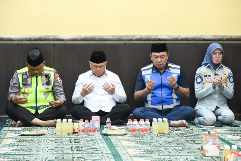 Korlantas Polri, dan Jasa Marga mengikuti kegiatan doa bersama yang digelar pada Jumat malam, 26 Desember 2025, di Command Center KM 29, Cikarang, Jawa Barat.