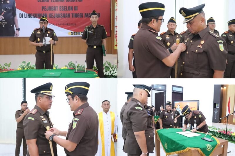 Ambon, PT- Kepala Kejaksaan Tinggi Maluku Rudy Irmawan, S.H.,M.H, resmi melantik Asisten Tindak Pidana Umum Kejaksaan Tinggi Maluku dan Kepala Kejaksaan Negeri Maluku Tenggara, di Aula Sasana Adhyaksa Kejaksaan Tinggi Maluku, pada hari ini Selasa (6/01/2026).