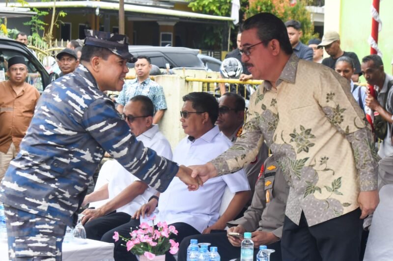 Ambon, PT- Komando Daerah Angkatan Laut IX Ambon (Kodaeral IX Ambon). Komandan Komando Daerah Angkatan Laut (Dankodaeral) Laksamana Muda TNI Hanarko Djodi Pamungkas, S.H., diwakili Aster (Asisten Teritorial) Kodaeral IX Ambon Letkol Laut (PM) Dodi S.H., M.H., melaksanakan kegiatan Vicon dalam rangka Gerakan Pangan Murah (GPM) Serentak bertempat di Yayasan Al – Ikhlas, Desa Batu Merah, Kecamatan Sirimau, Kota Ambon, Maluku. Sabtu (30/08/2025)