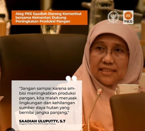Jakarta, Pusartimur.com – Anggota Komisi IV DPR RI dari Fraksi PKS, Saadiah Uluputty, menekankan pentingnya keseimbangan antara pemanfaatan kawasan hutan untuk ketahanan pangan dengan upaya menjaga kelestarian lingkungan.