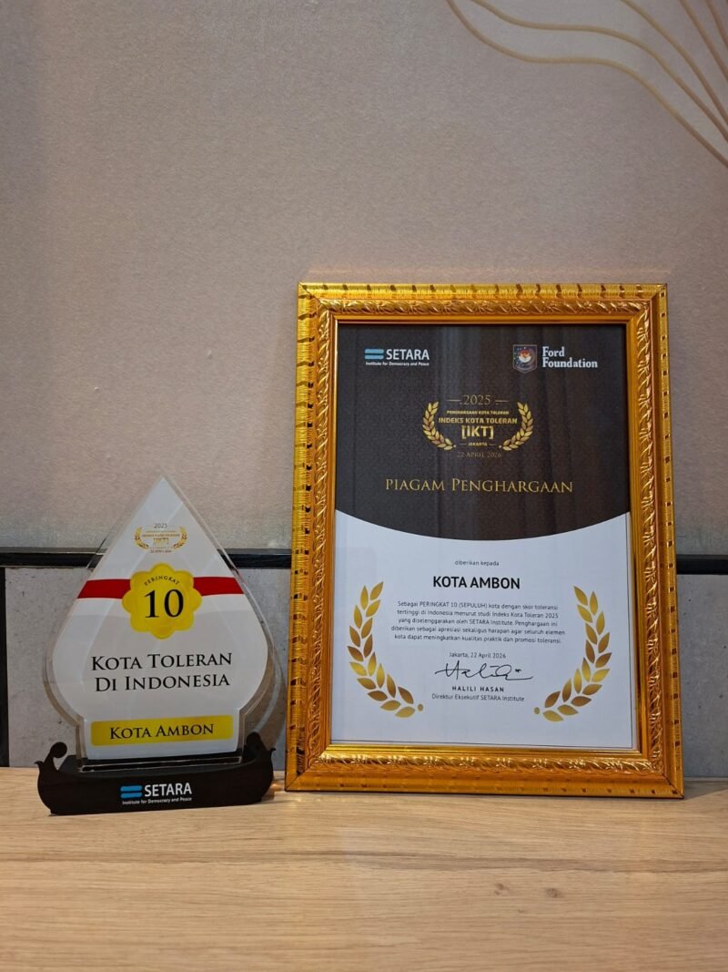 JAKARTA, PT – Kota Ambon berhasil menduduki peringkat ke 10 Indeks Kota Toleran (IKT) Tahun 2025 dengan Skor 5,657 berdasrakan penilaian SETARA Institute yang diluncurkan Rabu (22/4/26) di Mangkuluhur Arthotel Suites, Jakarta,.