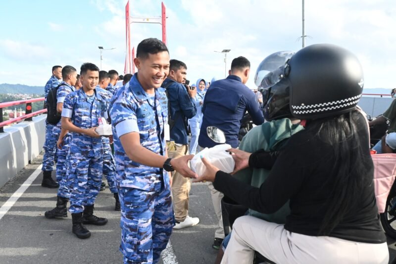 Ambon, PT – Dalam rangka mengisi bulan suci Ramadhan 1447 H dengan kegiatan yang penuh keberkahan, Pangkalan TNI AU Pattimura menggelar aksi sosial berbagi takjil gratis kepada masyarakat di kawasan Jembatan Merah Putih, Ambon, Selasa (17/3/2026). Sebanyak 200 paket takjil dibagikan kepada para pengendara dan masyarakat yang melintas menjelang waktu berbuka puasa.