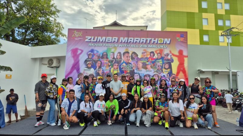 Ambon, PT- Dalam rangka menutup akhir tahun 2025 dengan semangat hidup sehat dan kebersamaan, komunitas Zumba Instructor Network (ZIN) Maluku sukses menggelar Zumba Marathon Akhir Tahun “With All ZIN Maluku” yang berlangsung meriah di area parkiran Zest Ambon, Minggu (28/12/2025).